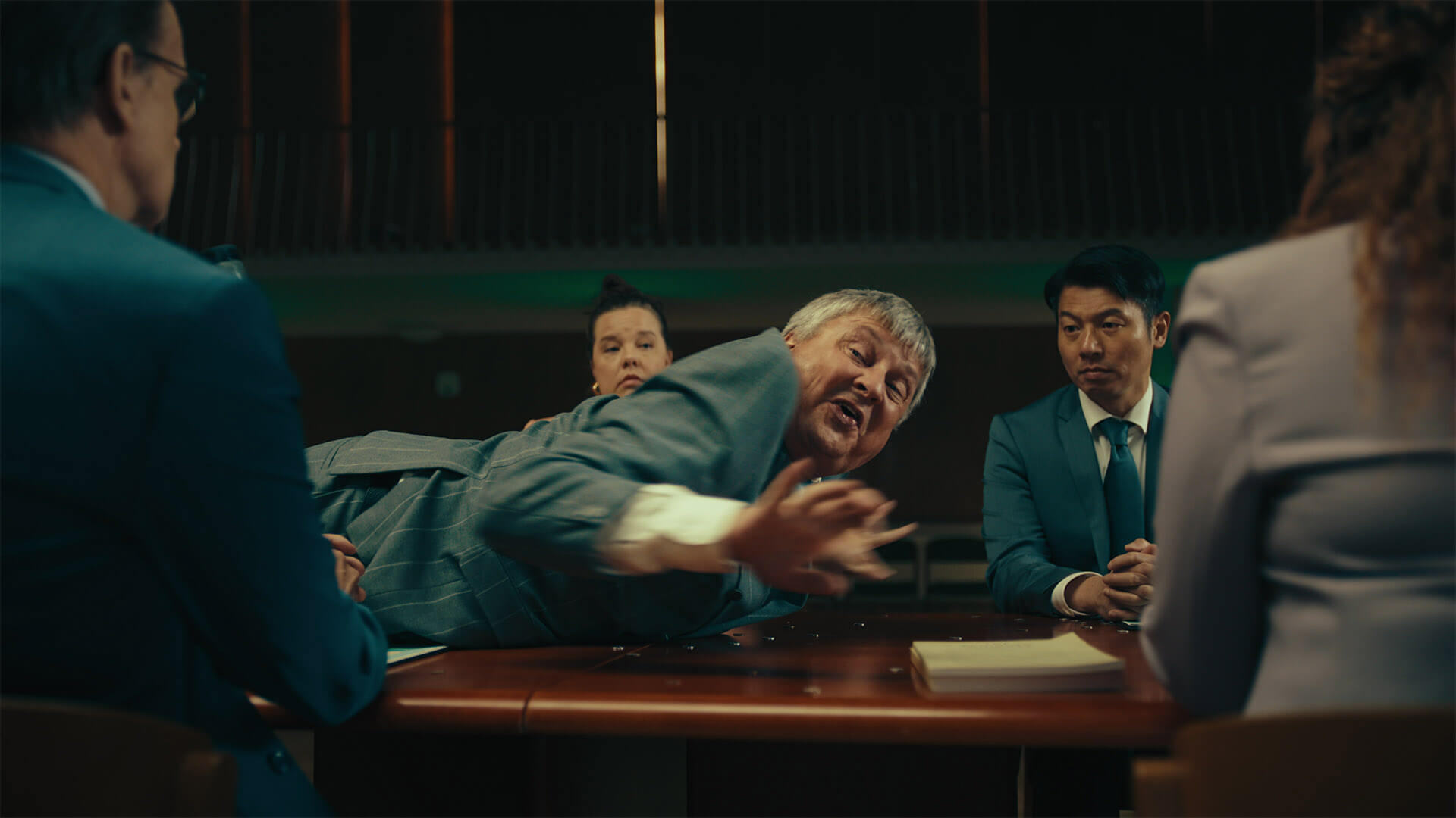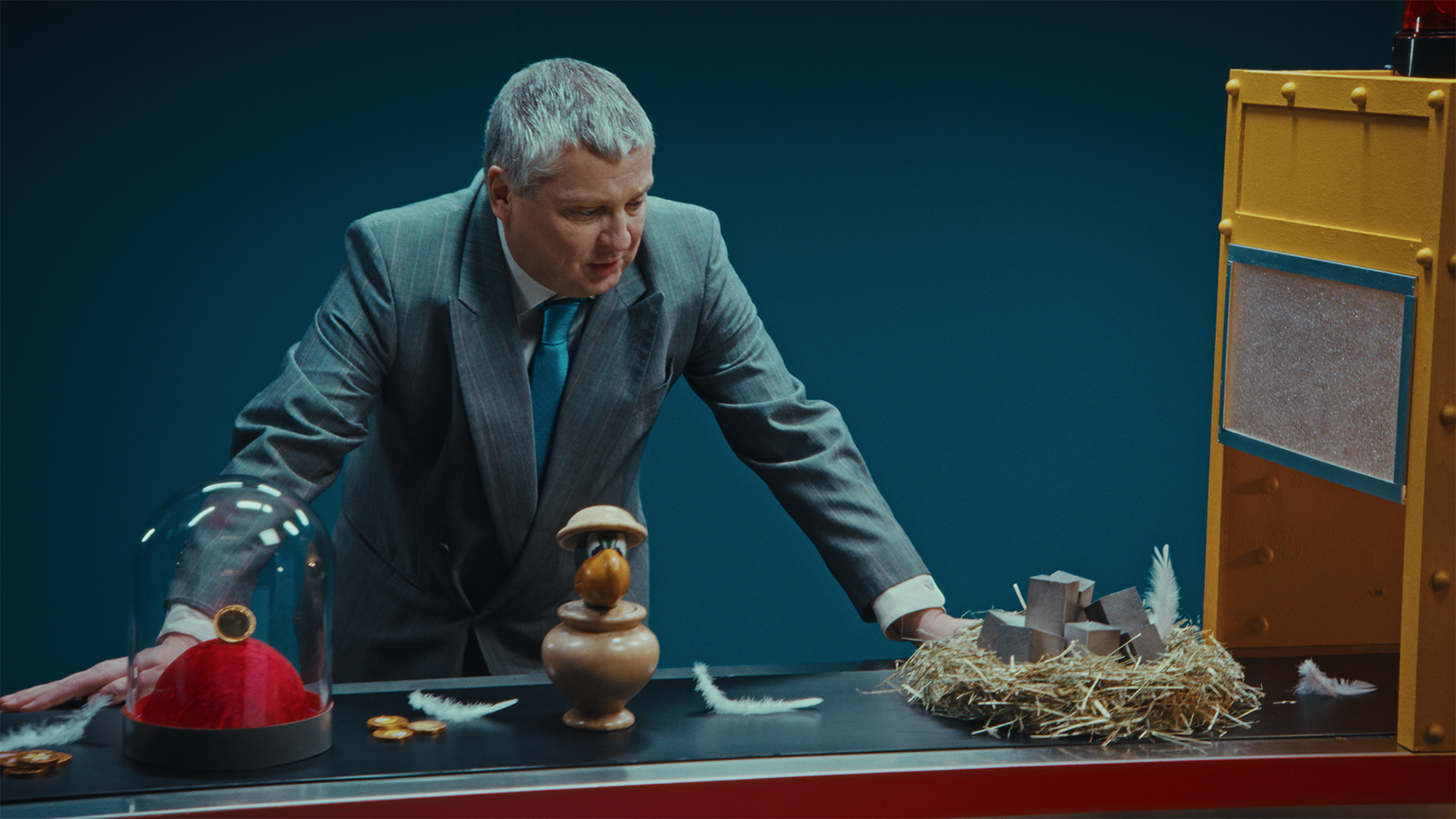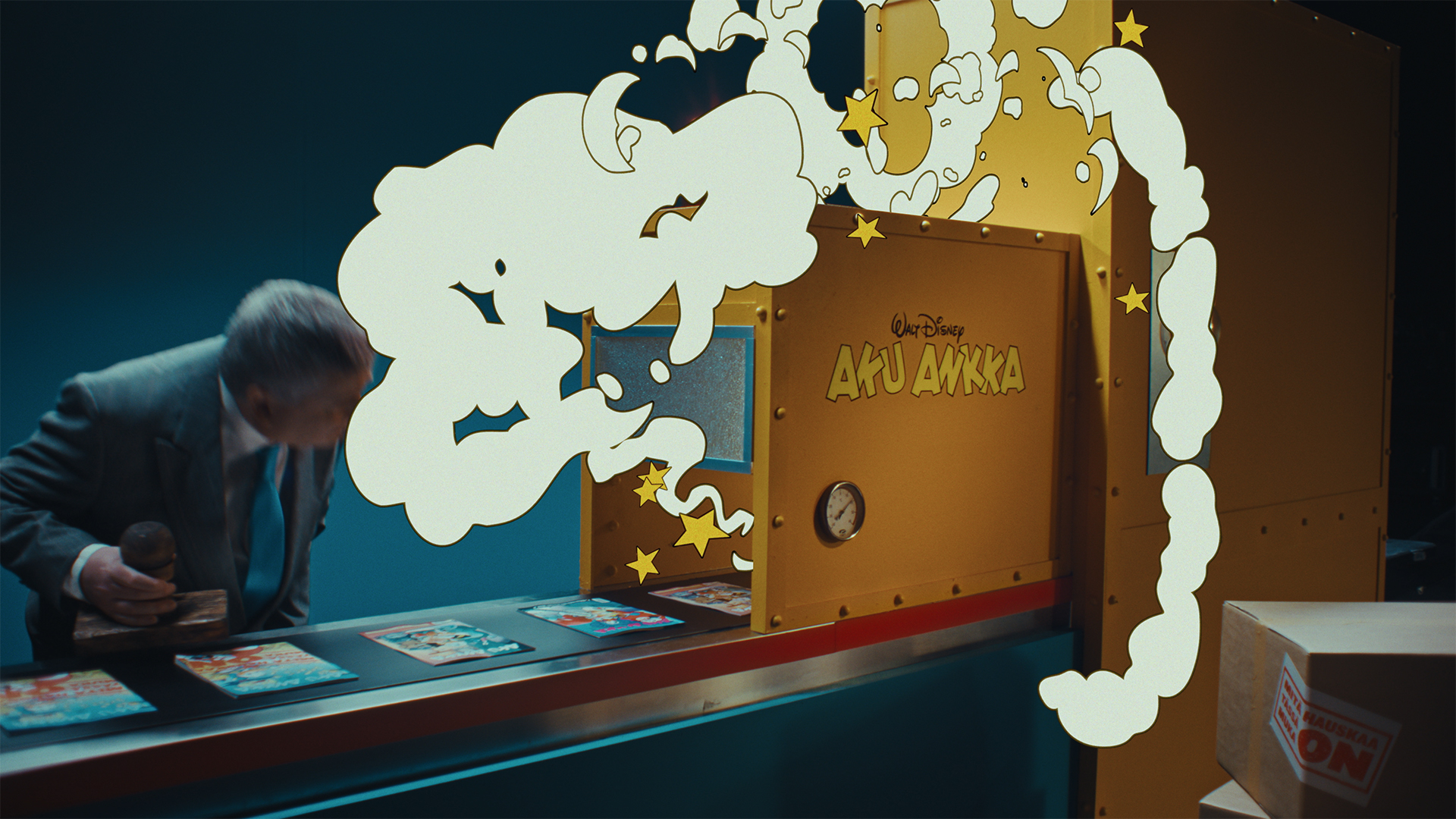 Etenkin filmeissä toimme kehiin hauskuuden vastavoiman: herra Yrmyn, joka ei ymmärrä akumaisia hauskuuksia ei sitten millään – ja tekee vastustuksellaan niistä entistäkin hauskempia. Radiossa innokas spiikkeri puolestaan kykenee vain muka-hauskuuksiin. Suurin hauskuus asuu Aku Ankassa.