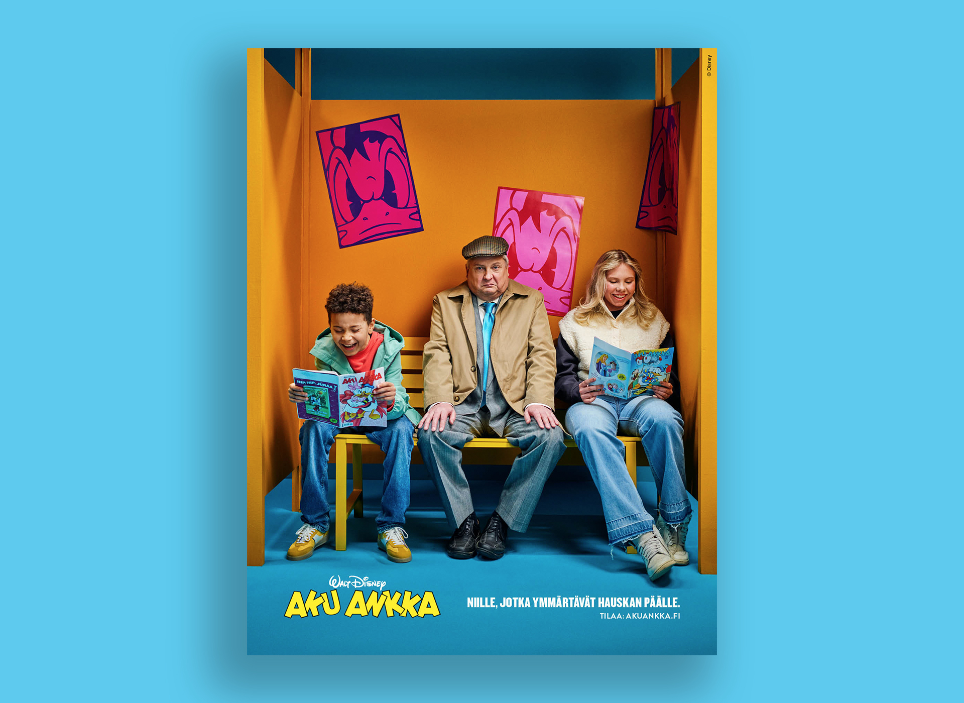 Aku Ankka on ennen kaikkea riemastuttava lukupläjäys. Sen korostamiseksi lehdelle on vastikään luotu pääviesti ja -asenne: ”Niille, jotka ymmärtävät hauskan päälle”. Miten tehdä tästä monipuolista mainontaa?